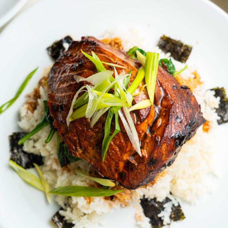 Jasmine rice, sautéed spinach, nori (seaweed).